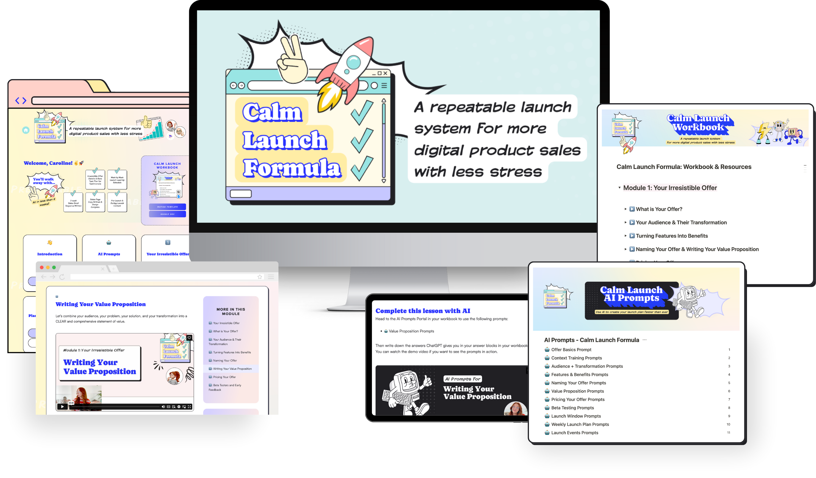 ✅ | Calm Launch Formula companion workbook in Notion and Google Doc format |